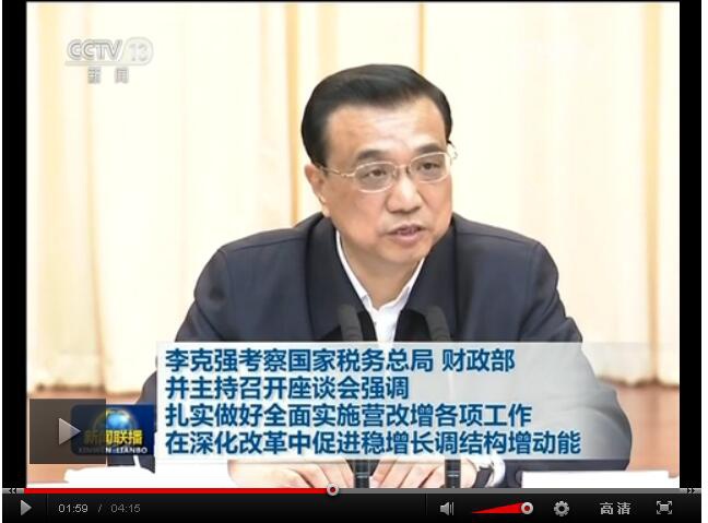 李克强考察国家税务总局、财政部并主持召开座谈会强调 扎实做好全面实施营改增各项工作 在深化改革中促进稳增长调结构增动能