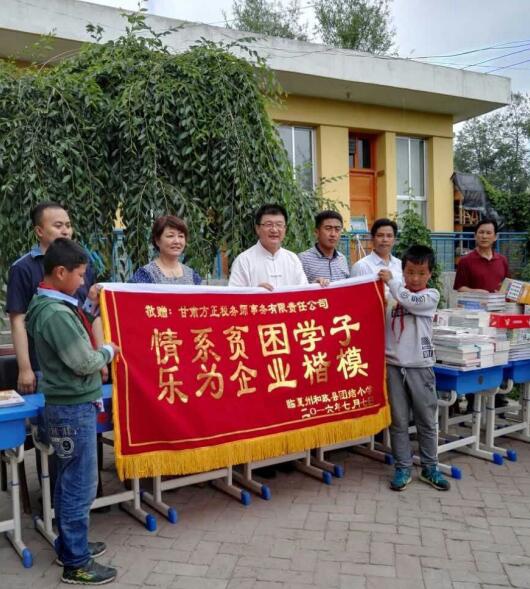 捐赠活动尾声,受赠学校向甘肃方正税务师事务所回赠了“情系贫困学子,乐为企业楷模”的锦旗。