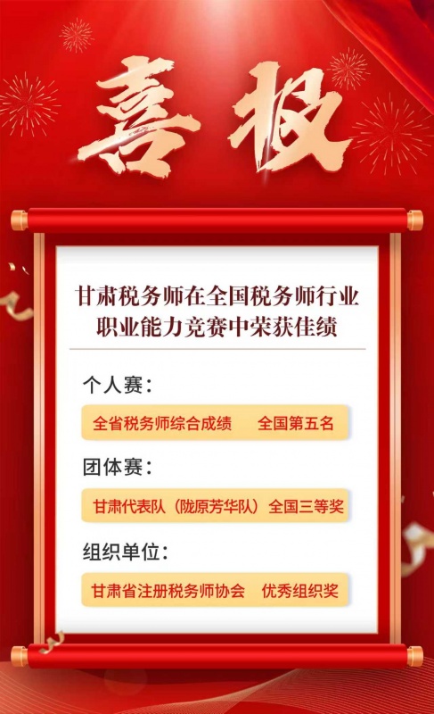 ——甘肃代表队勇夺全国税务师行业职业能力竞赛团体三等奖及优秀组织奖